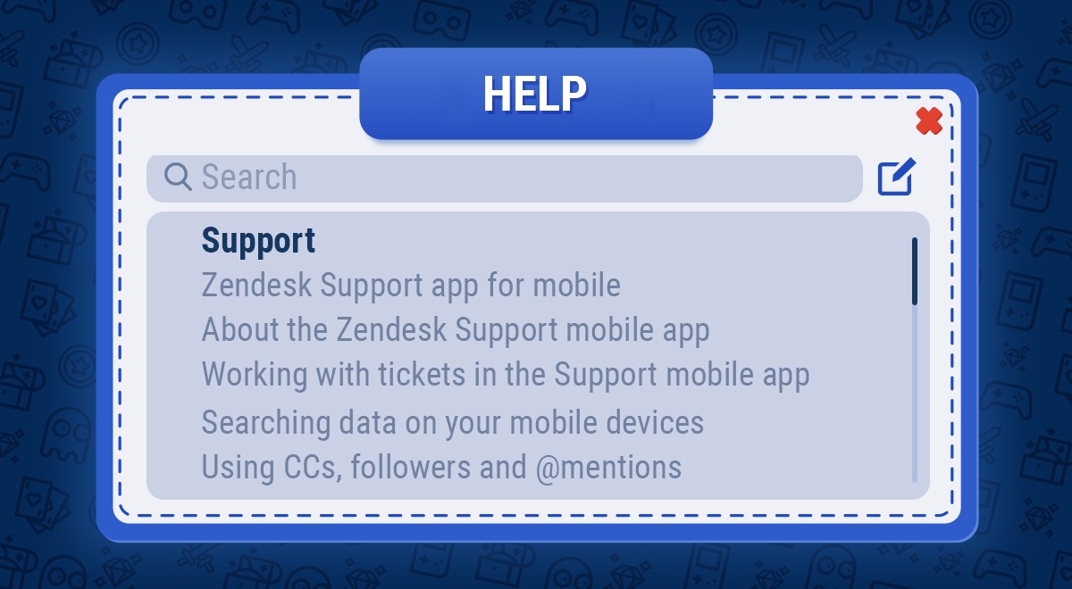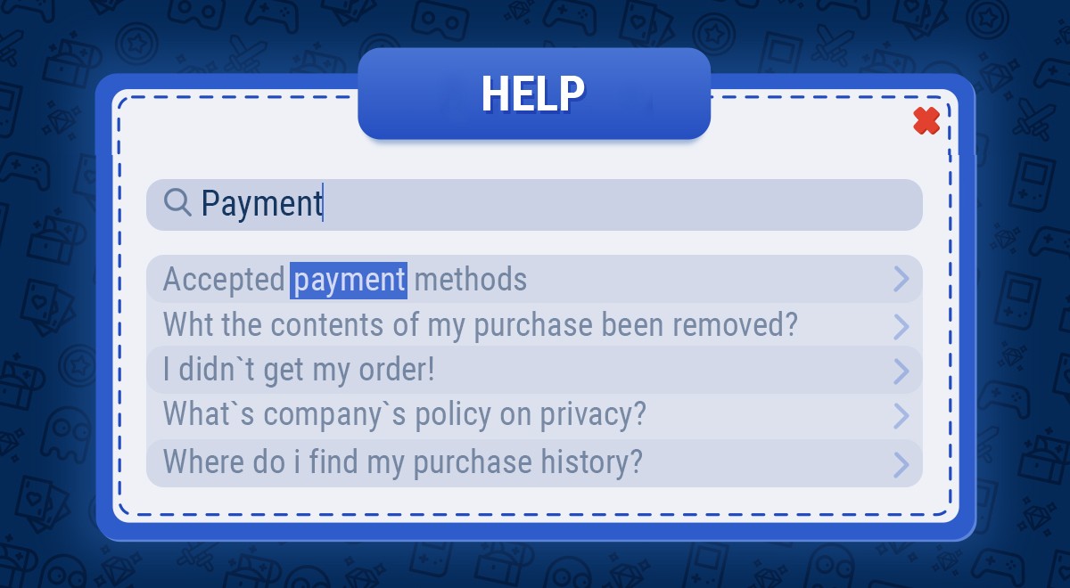 The best option is to integrate a knowledge base that includes an in-game support chat. Visually it looks like a window with a list of articles and a “submit request” button at the top or bottom. The player can look for the answer to their question in the articles, and if they can’t find it, they can contact support without leaving the interface.